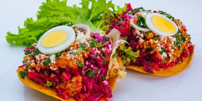 Built on a crispy tostada, they’re stacked with lettuce, ground meat, pickled purple cabbage, red salsa, raw onions, a slice of boiled egg, cilantro, and queso seco. Besides tamales, these are a go-to for family celebrations. And they never get old.